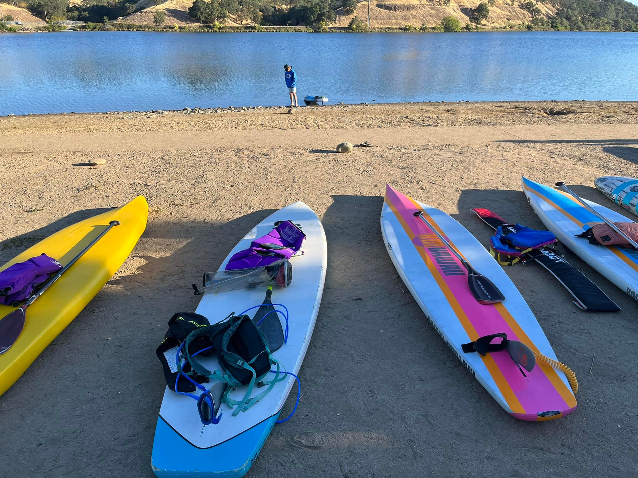 Lake Natoma is one of the most beautiful lakes in Northern California and a paddlers paradise! The entire lake is a 5MPH zone, there is no current and both sides of the lake are protected from wind. These water conditions are perfect for the Elite paddler to see how fast they really can go and the beginner paddlers can try out racing in “glass” conditions.