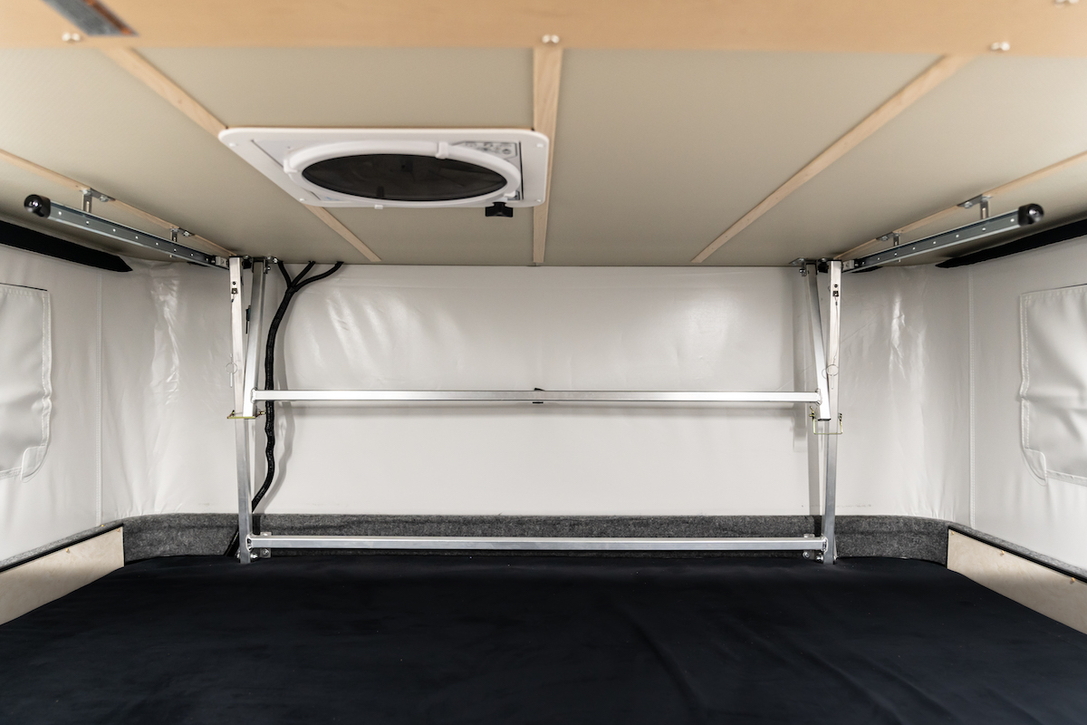 In some US regions, there is a need for AC to make summer camping more enjoyable. Now, the combination of lithium batteries and a new light and efficient Nomadic Cooling X2 AC product, make optional rooftop AC a reality. AC is now available on 90% of camper models.