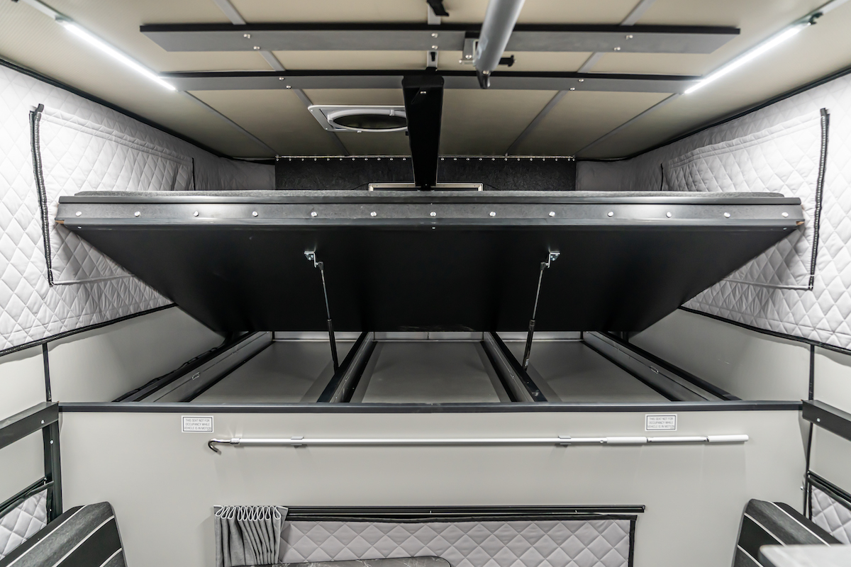 A popular feature of Flat-bed camper models, optional underbed storage, is now available for Slide-in camper models. The underbed storage adds welcomed space of 72” wide X 58” long X 4” deep. In addition to the enhanced space, the underbed storage delivers an aesthetic improvement to the camper extension over the truck cab. Also, the extended cabover length translates to a reduction in the slide-out portion of the bed. This means the slide-out bed doesn’t consume as much camper living space. Lastly, on models with underbed storage, the interior height increases from 6’6” to 6’10”, adding to the already spacious feel inside the camper.