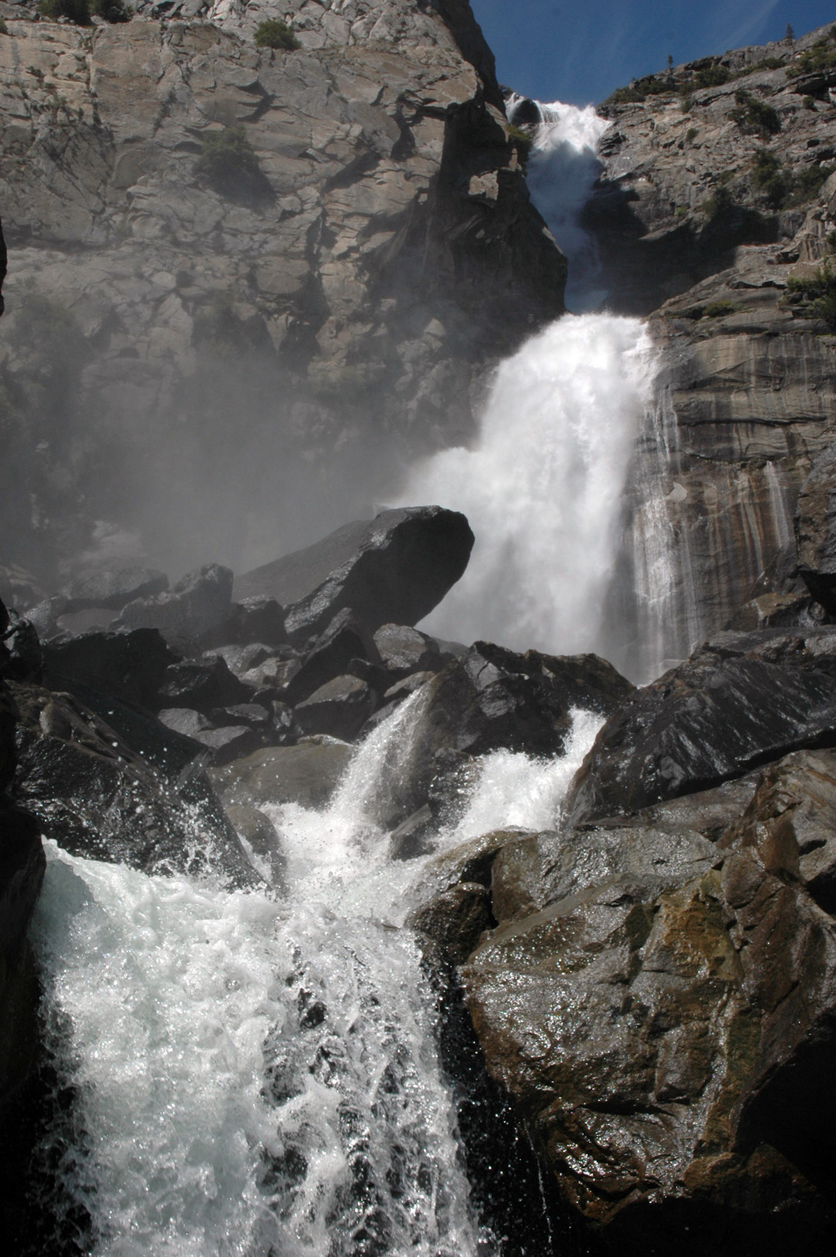 The climbing ends at the upper winter gate. From here, a narrow and exposed path drops about a quarter-mile to a fenced viewing ledge beside the upper lip of the waterfall. Hikers get to stand just a few feet away from the thundering river as it shoots into the void. Enjoy your stay and retrace your steps to return to Camp 4.