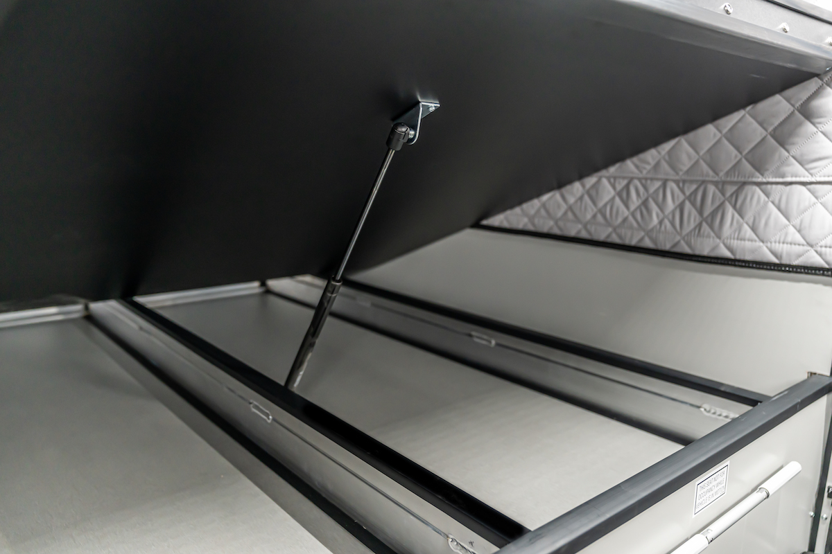 A popular feature of Flat-bed camper models, optional underbed storage, is now available for Slide-in camper models. The underbed storage adds welcomed space of 72” wide X 58” long X 4” deep. In addition to the enhanced space, the underbed storage delivers an aesthetic improvement to the camper extension over the truck cab. Also, the extended cabover length translates to a reduction in the slide-out portion of the bed. This means the slide-out bed doesn’t consume as much camper living space. Lastly, on models with underbed storage, the interior height increases from 6’6” to 6’10”, adding to the already spacious feel inside the camper.
