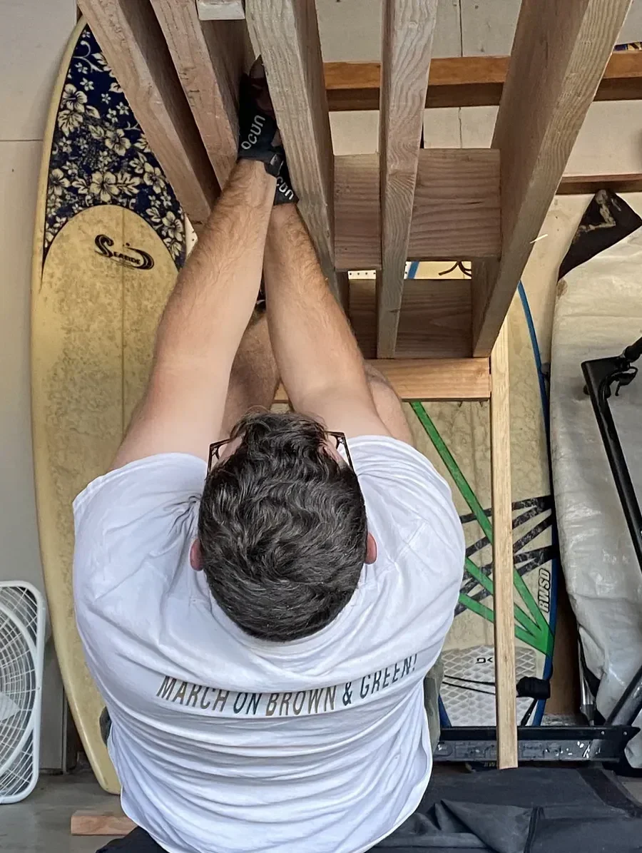 The CrackHouse was born during the pandemic. Collin, ever the tinkerer, studied engineering at San Diego State and has the kind of brain that looks at a problem and thinks: I could build a better version of that. Inspired by Mary Eden (@tradprincess) and her lockdown training videos, he and his roommate Vishal designed a roof crack trainer in their garage in 2022.