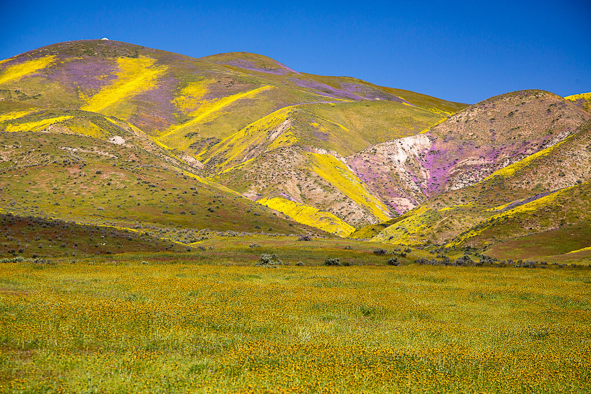 Carrizo Plain National Monument is the largest native grassland remaining in California, and though a small mountain range separates it from the Central Valley proper, it shares a very similar ecosystem. Soda Lake is one of the dominant features of the Carrizo Plain, but the vast open grasslands rimmed by mountains provide the perfect backdrop for the annual spectacular wildflower show. Not every year is a super bloom, but every year does provide an awe-inspiring display.