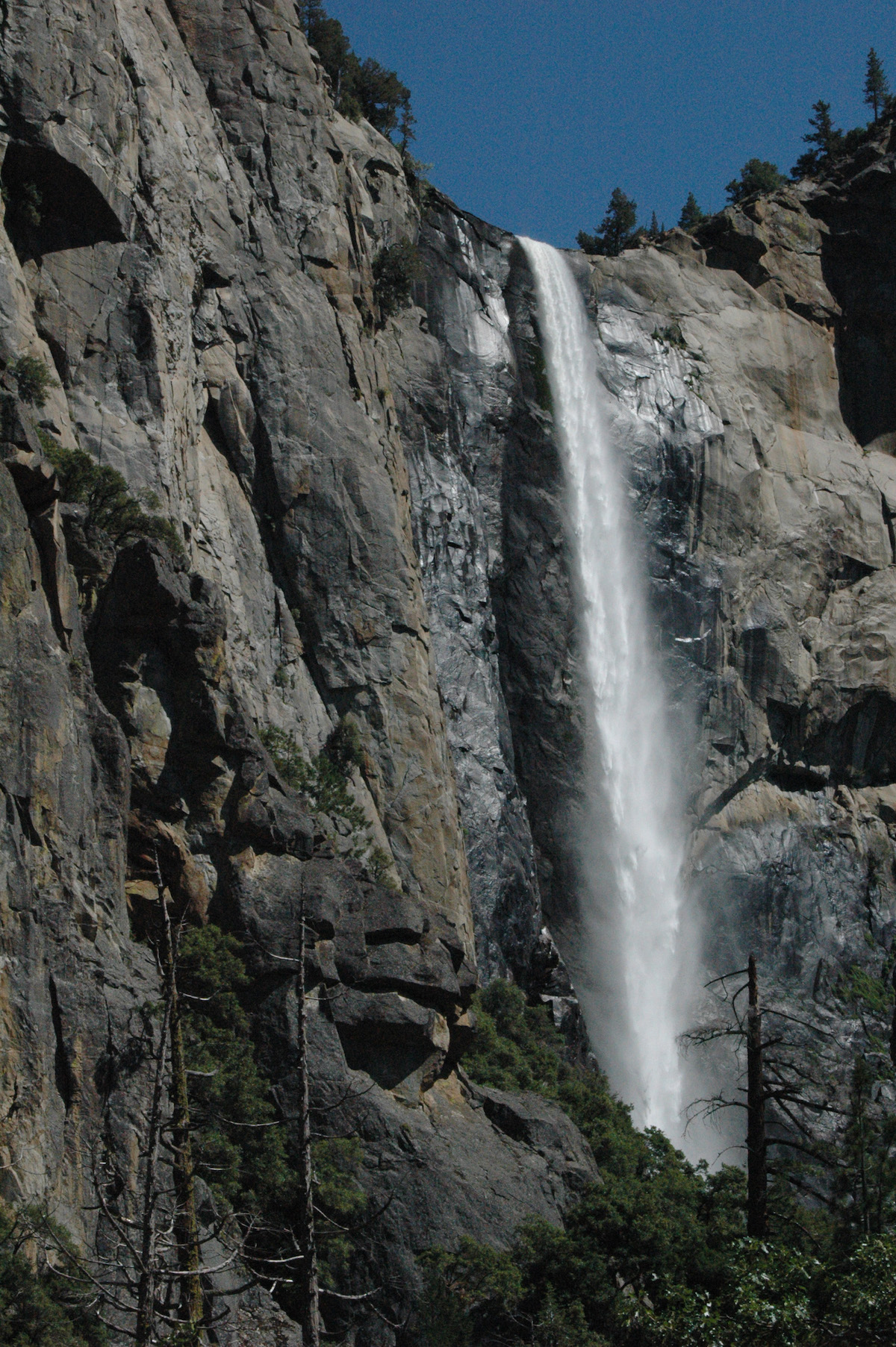 Bridalveil Creek falls over a steep drop in a long, elegant flow that resembles a bride’s veil, as the name suggests. This is the first grand sight reached by those entering Yosemite Valley from the west and certainly merits a stop. Turn right off Southside Drive towards Highway 41 and quickly turn left into the parking area. The hike to the viewing area is a quarter-mile long with some gentle climbing.