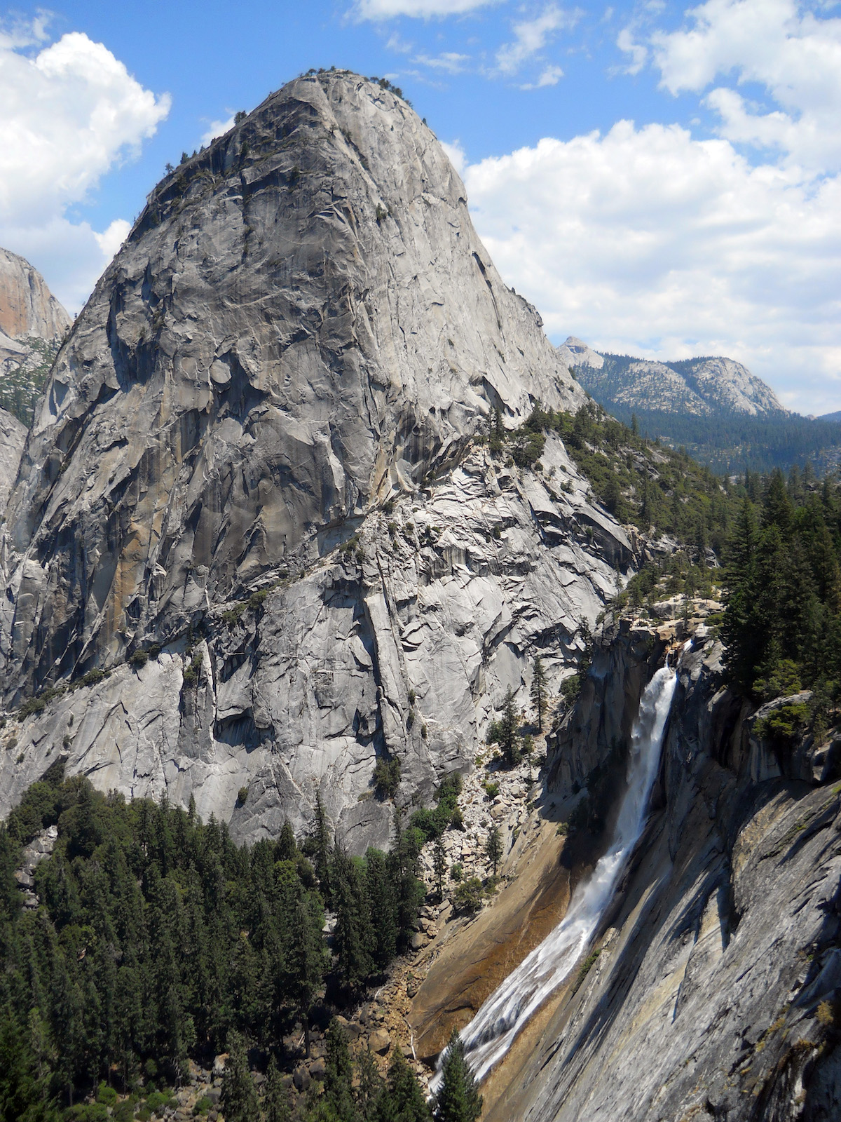 For more variety, go back on the John Muir Trail. This affords hikers a terrific view of Nevada Fall and Liberty Cap, and another of Vernal Fall at Clark Point.